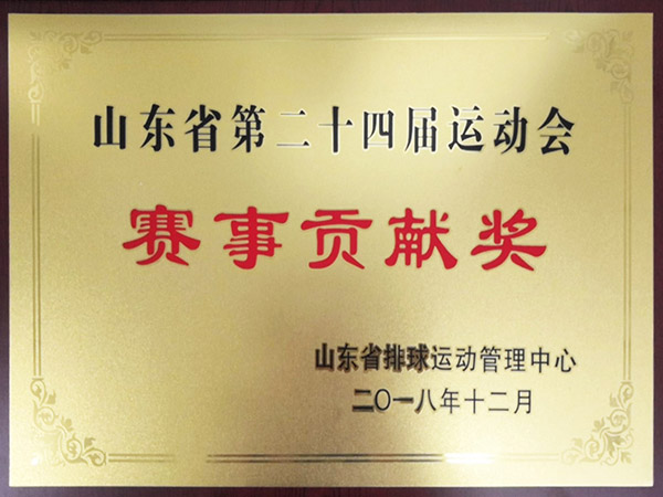 2018年12月,获得山东省第二十四届运动会“赛事贡献奖”