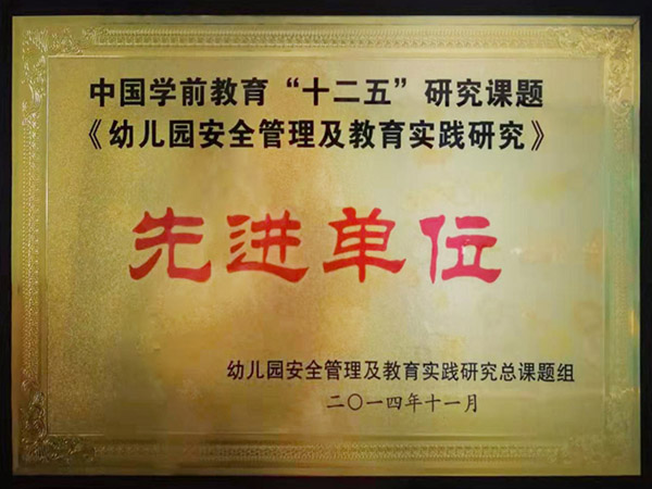 2014年11月,被评为中国学前教育“十二五”研究课题《幼儿园安全管理及教育实践研究》“先进单位”