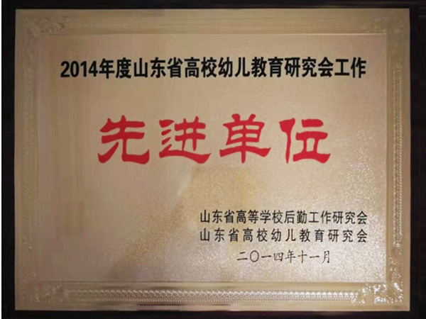 2014年11月,被评为2014年度山东省高校幼儿教育研究会工作“先进单位”