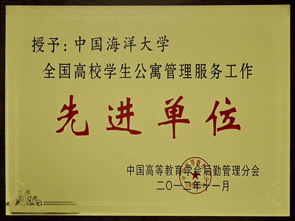 2012年11月,被评为全国高校学生公寓管理服务工作“先进单位”