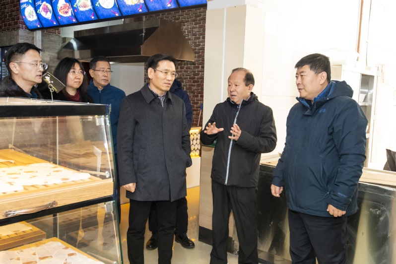 本站讯 12月17日中午,学校党委书记田辉、党委副书记卢光志一行到崂山校区海岚餐厅调研教工餐厅建设情况。