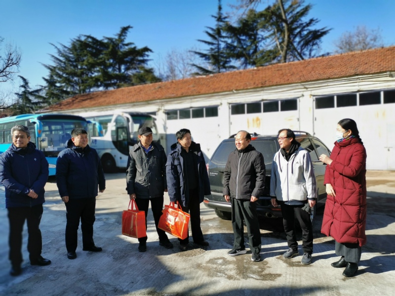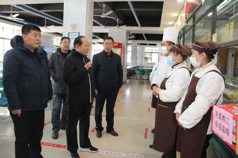 本站讯 时迎新年,岁寒情暖。2021年1月1日,学校党委副书记卢光志在工会、保卫处、后勤保障处主要负责人的陪同下,分别到崂山校区、鱼山校区后勤、保卫一线,为坚守岗位的员工们送去慰问品以及学校的关怀与祝福。