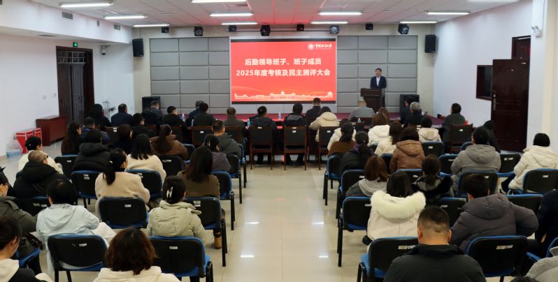 本站讯 1月4日下午,后勤召开2025年度考核与民主测评会,同时部署寒假前后安全稳定工作。后勤党政领导班子成员、党支部书记,后勤保障处机关科室人员,后勤保障处各服务中心、业务单位三级以上管理人员及一线员工代表共70余人参加会议。会议由后勤党委书记王继贵主持。
