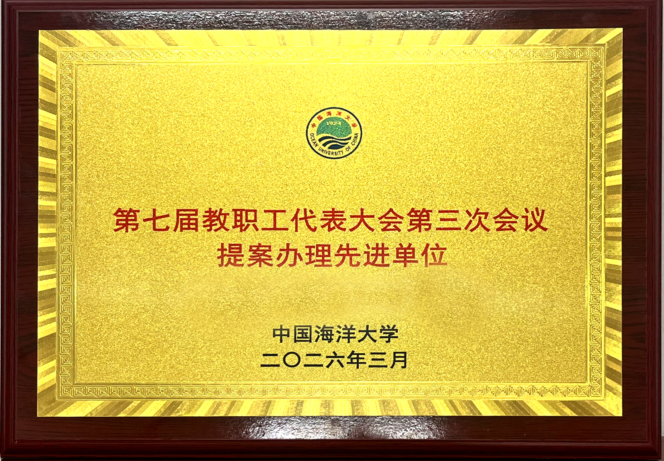 2026年3月获评学校第七届教职工代表大会第三次会议提案办理先进单位