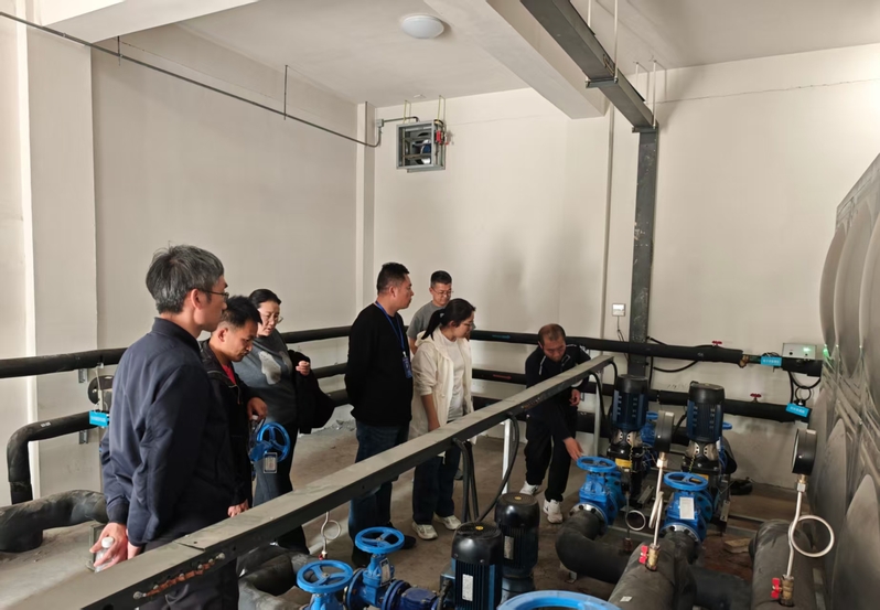 本次培训特邀山东力诺瑞特新能源有限公司工程师授课。工程师结合学校公共浴室及微浴室设备运行实际,系统讲解了空气源热泵机组工作原理、设备日常巡检要点、定期清洗除垢流程及远程智能控制系统使用等核心内容,并针对水温调整、参数设置等常见问题与参训人员互动交流。在热泵机房现场,工程师对照设备实物,手把手讲示范解安全巡检步骤及常见故障初步排查方法。