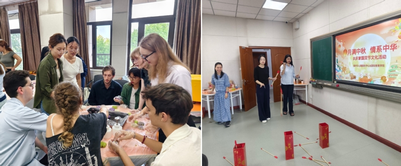 本站讯 为弘扬中华优秀传统文化,丰富学生校园文化生活,9月29日,留学生公寓服务中心联合国际教育学院在崂山校区举办“月满中秋 情系中华——共庆家国双节”文化活动,与学生共迎家国同辉的美好时刻。