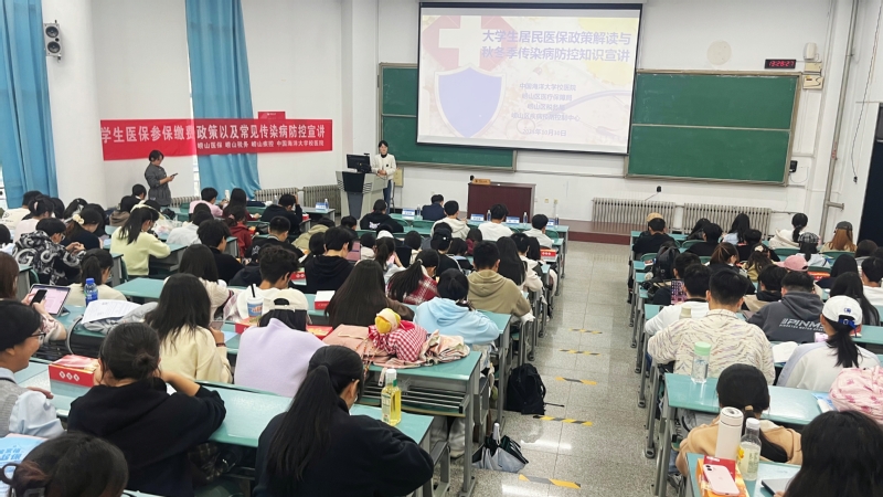 本站讯 10月30日,校医院联合崂山区医疗保障局、税务局、疾病预防控制中心,在崂山校区举办“守护健康 医路同行”宣讲活动,317 名师生代表参与。活动旨在推进大学生居民医保参保缴费工作,强化校园传染病防控,保障师生健康。